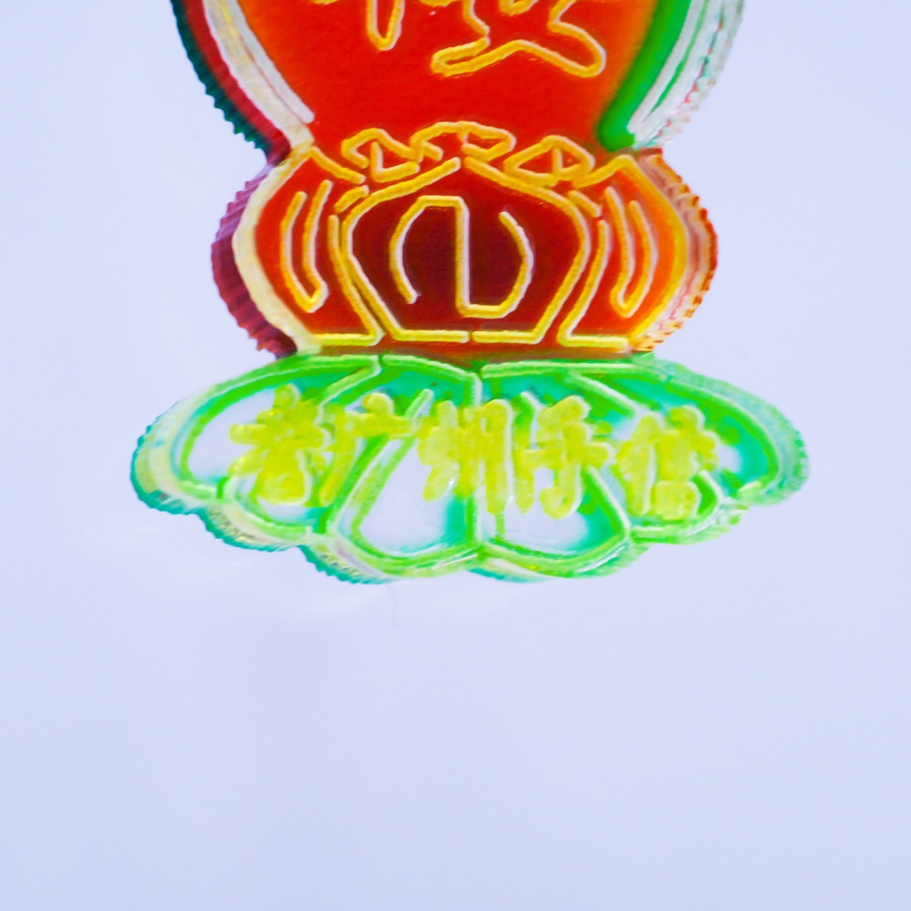 文字部分と背景にはスキマがあり、実際の香港/アジア圏のネオンサインと同じ構造で製作されています。側面から光が入ると、ネオンサインとしてデザインされた箇所が光って浮き出ます。(特許出願中)